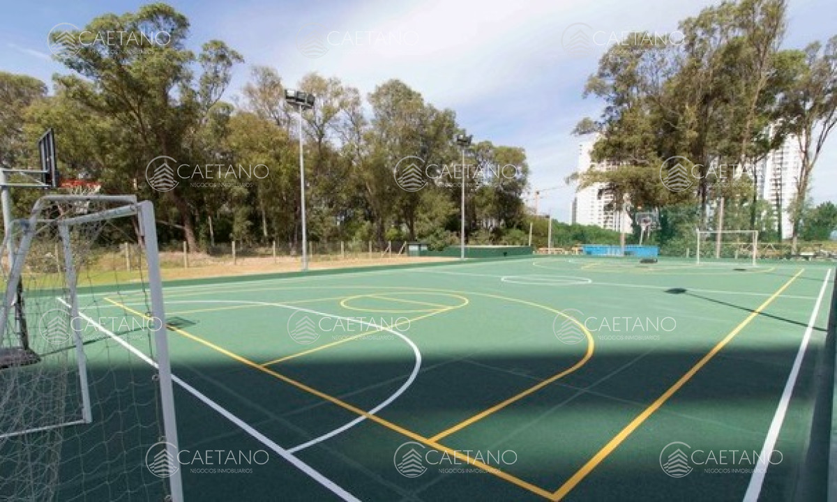 amplia área parquizada, cancha deportiva multipropósito, juegos para