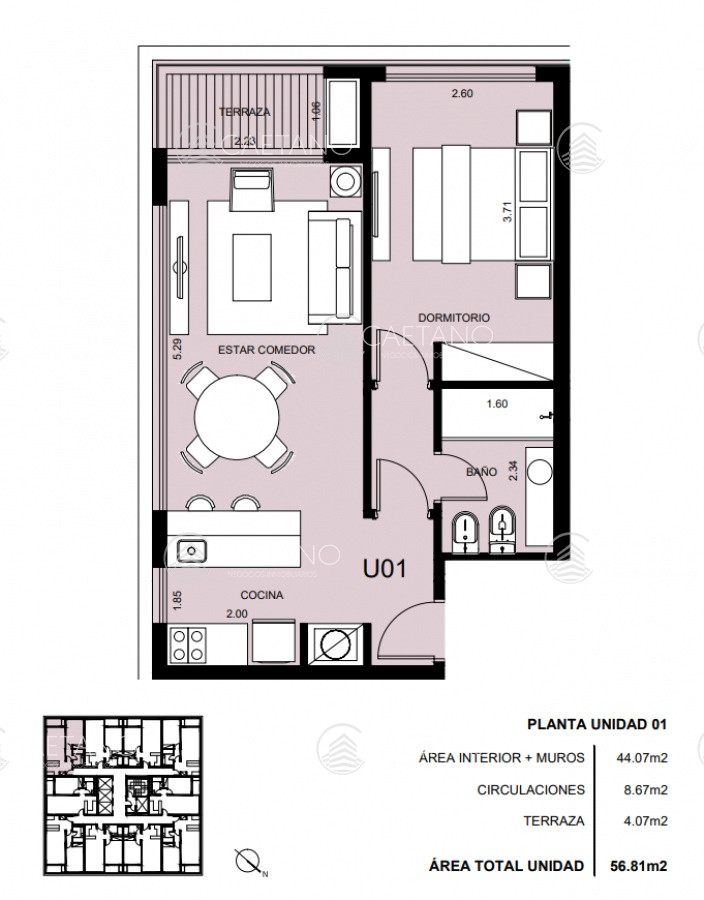 Esta unidad ofrece living comedor con cocina integrada y salida a balcón, un dormitorio y garaje.