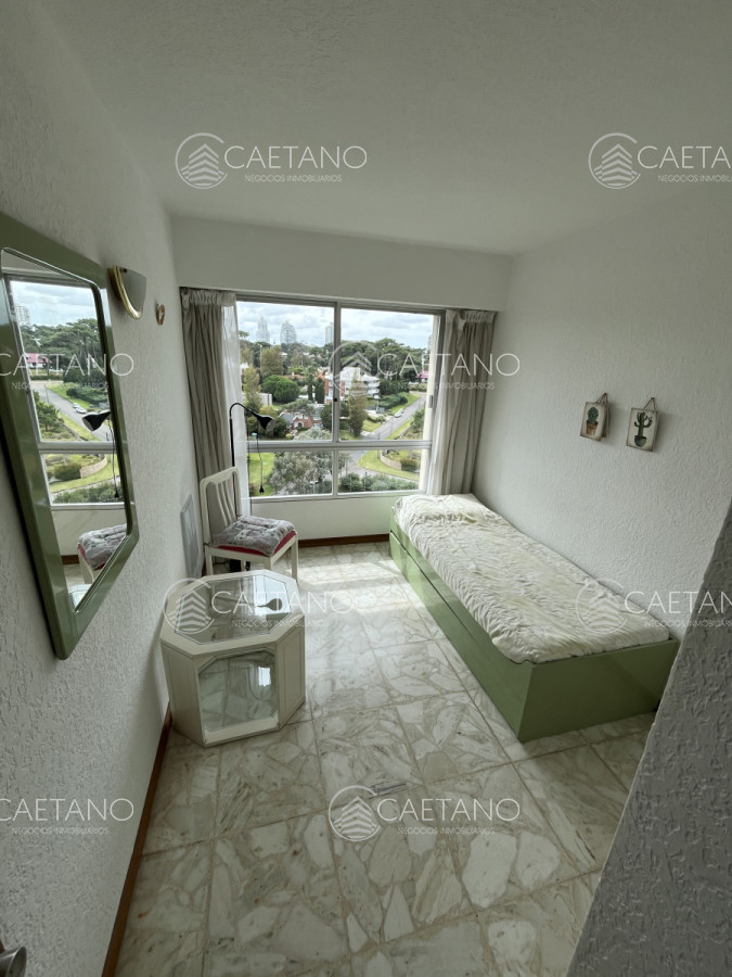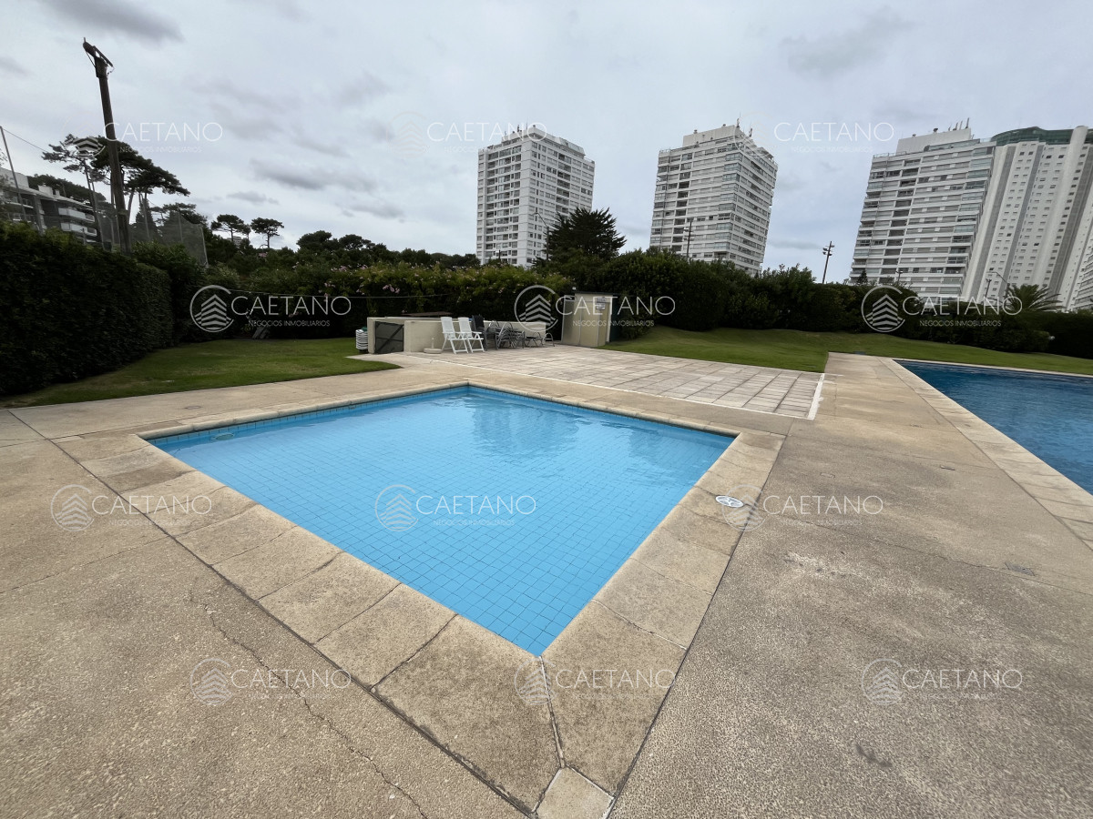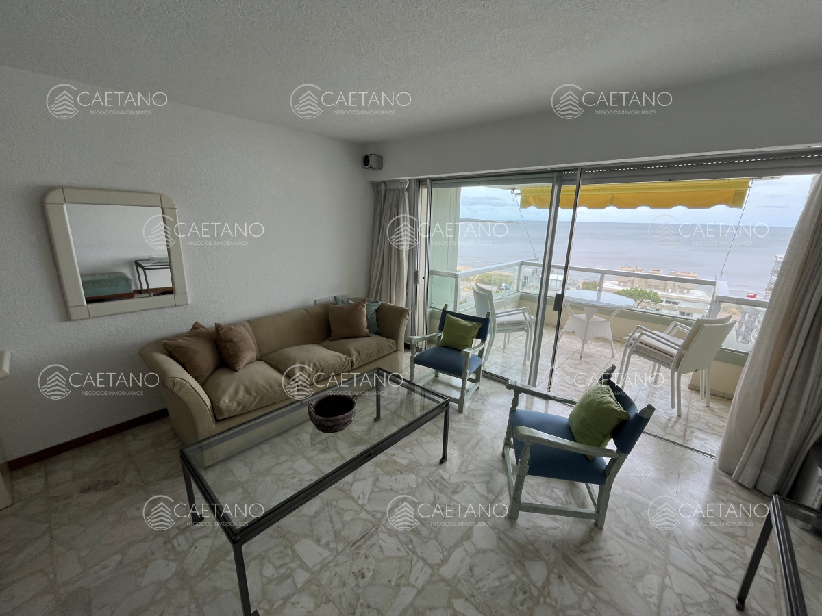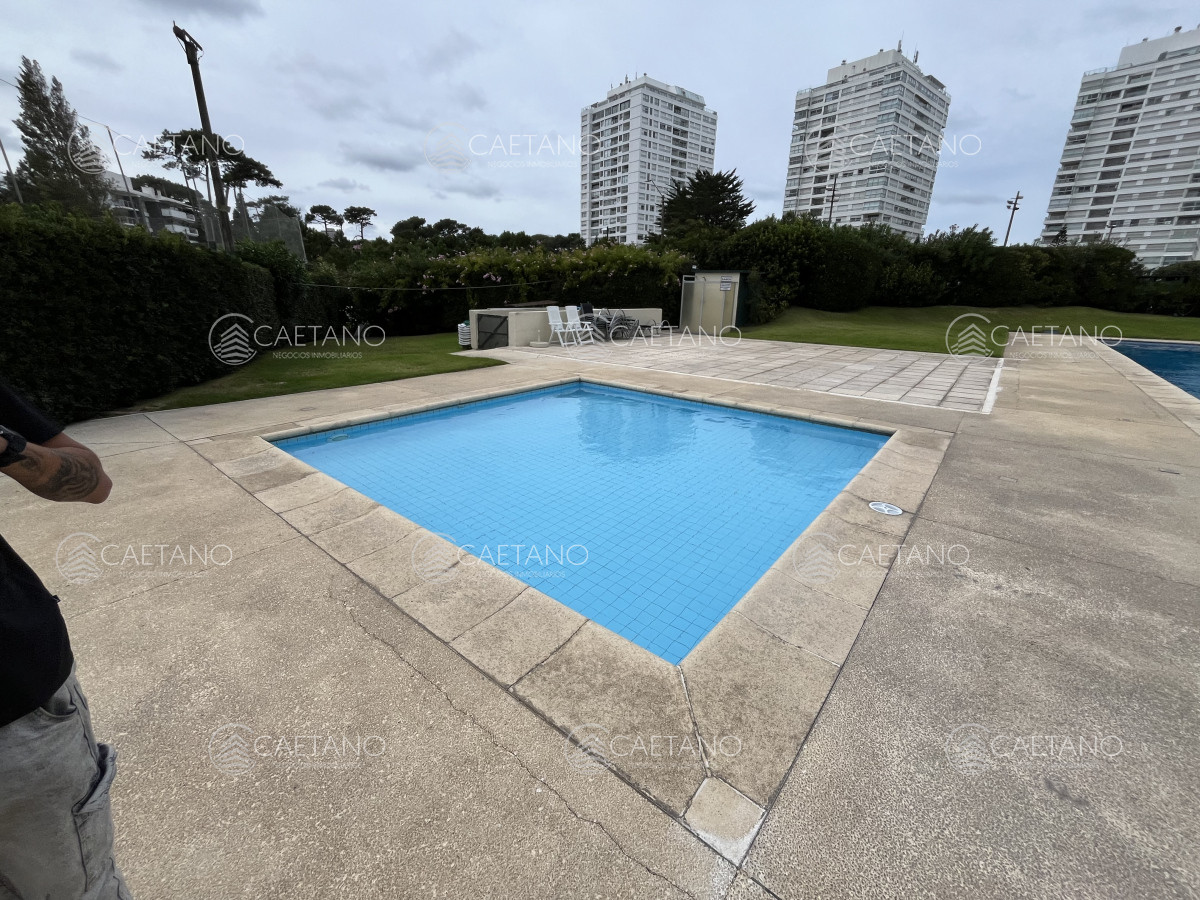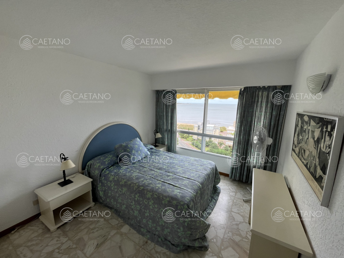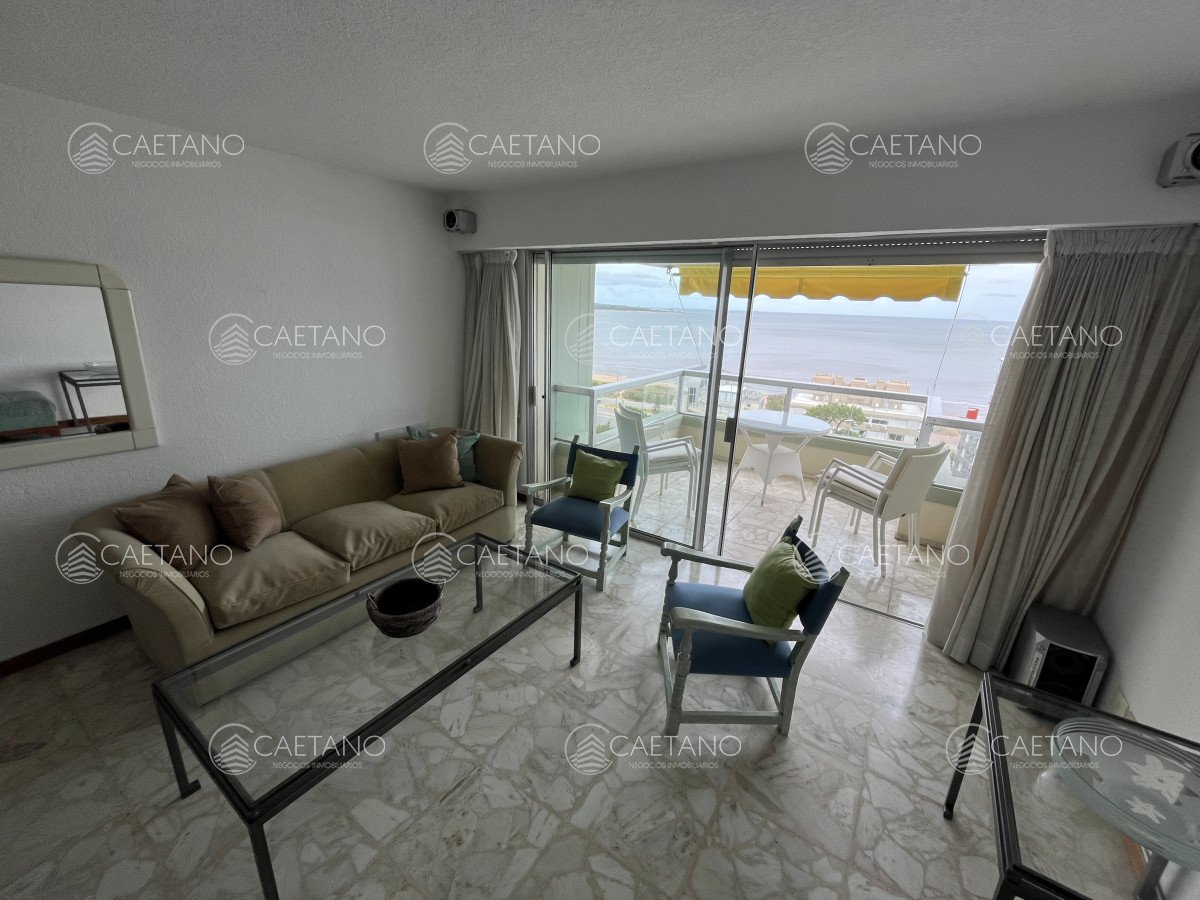 Apartamento en Parada 19 de Playa Mansa. Frente al mar. Complejo de categoría y gran comodidad. Entorno tranquilo y seguro. Servicio de playa, servicio de mucamas, piscina climatizada abierta, sala de juegos, gimnasio, sauna, cancha de tenis, estacionamiento de cortesía, Restaurante. Mini-mercado dentro del complejo. Portería 24 horas.