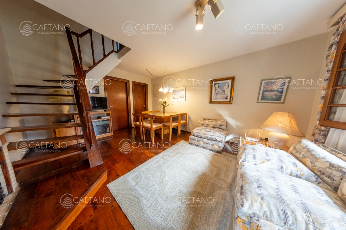 Departamento - Playa Mansa Duplex a 2 cuadras del Mar en zona de Playa Mansa, cuenta con 2 dormitorios, 2 baños, living-comedor con estufa a leña, cocina, parrillero techado y cochera. Bajas expensas. Consulte!