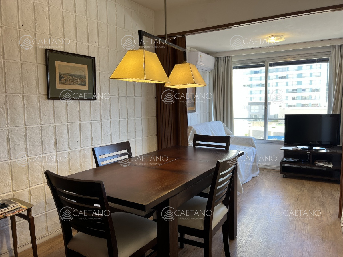 En la mejor zona de la península de Punta del Este, luminoso y muy agradable apartamento de 1 Dormitorio, 1 Baño, cocina definida, living comedor, medio dormitorio con cerramiento corredizo, vista al frente del edificio y vista parcial al mar, se encuentra totalmente equipado y amoblado, cuenta con una superficie aproximada 48 m2. Cuenta con servicio de mucamas diario, wifi, portería y vigilancia 24 hs. área protegida con cobertura médica, servicio de playa, mini gimnasio, directv por sistema pre pago, salón de usos múltiples. Los gastos comunes promedio mensual son de aprox U$S 255. Consúltenos para coordinar visita o para mas información.