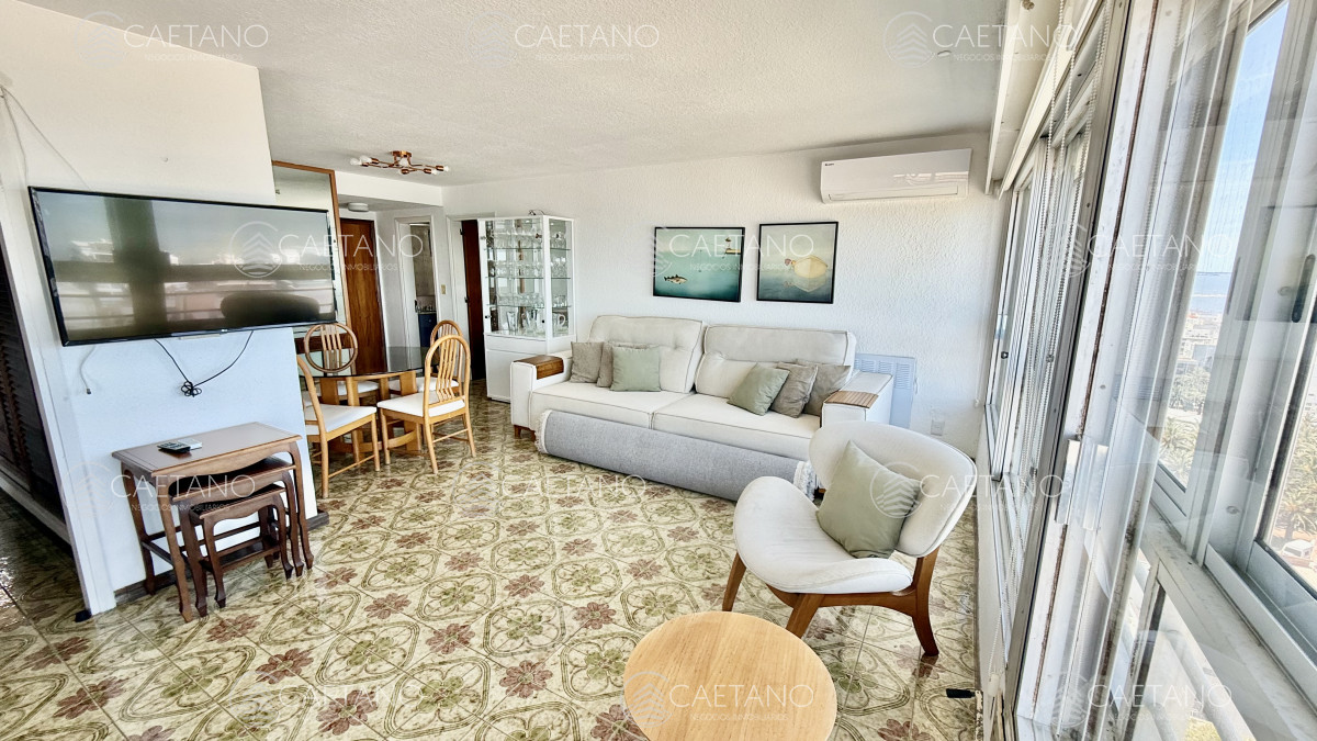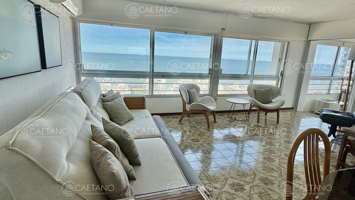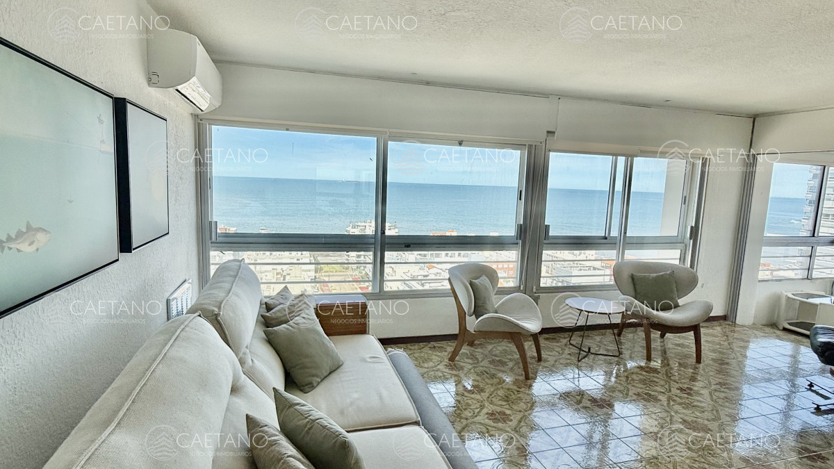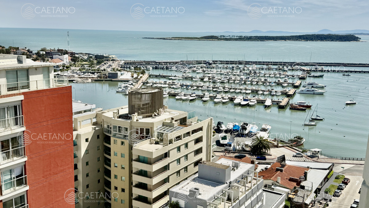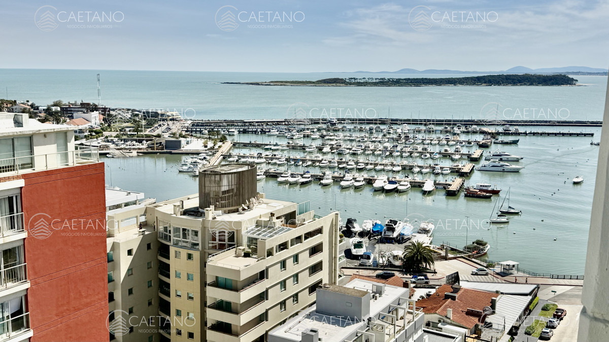 Excelente vista al Puerto y terraza cerrada a la Brava. Amplia recepción, 2 dormitorios y medio al Puerto, 2 baños, toilette, cocina equipada con comedor diario, terraza lavadero y garaje para 2 vehículos. Servicio de mucamas, wi-fi, barbacoa, sala de Tv, sala de lectura, salón de juegos, recepción 24hs, servicio de mantenimiento y de lavandería.