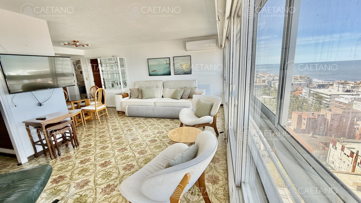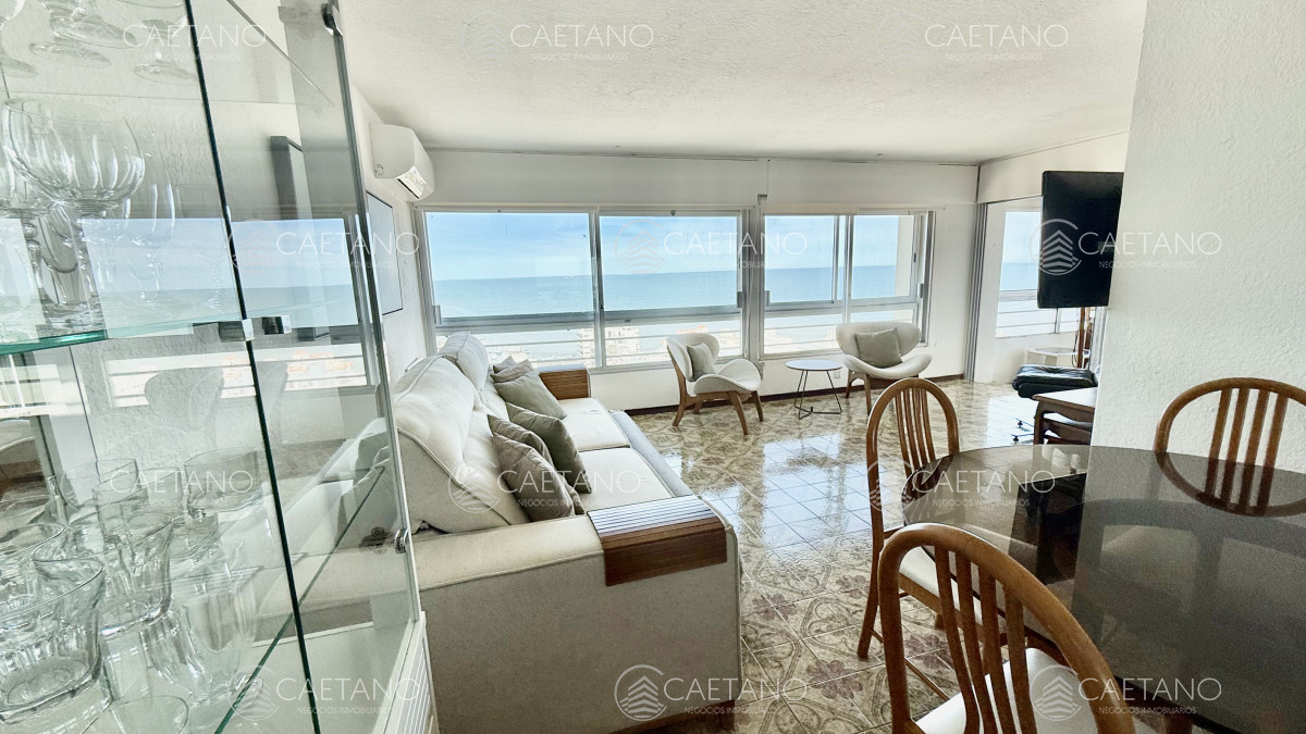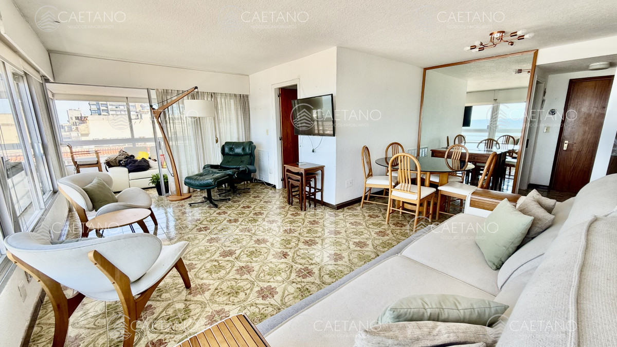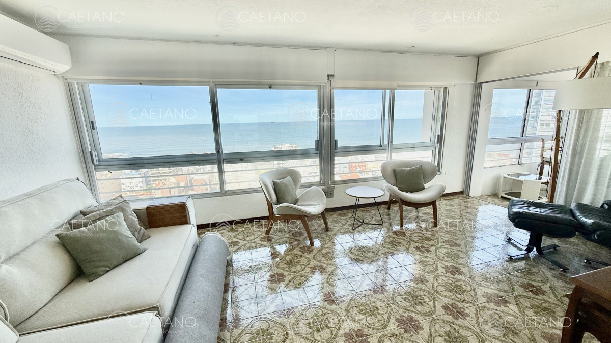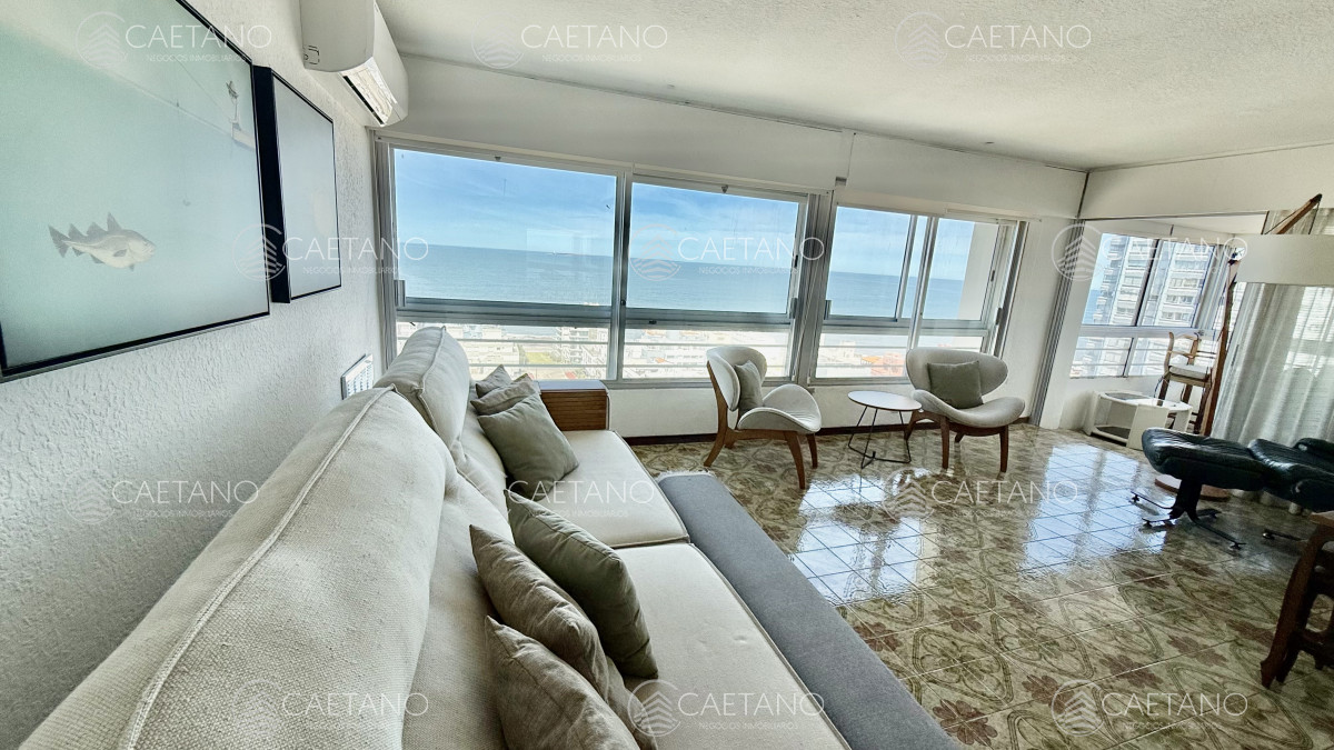 Excelente vista al Puerto y terraza cerrada a la Brava. Amplia recepción, 2 dormitorios y medio al Puerto, 2 baños, toilette, cocina equipada con comedor diario, terraza lavadero y garaje para 2 vehículos. Servicio de mucamas, wi-fi, barbacoa, sala de Tv, sala de lectura, salón de juegos, recepción 24hs, servicio de mantenimiento y de lavandería.