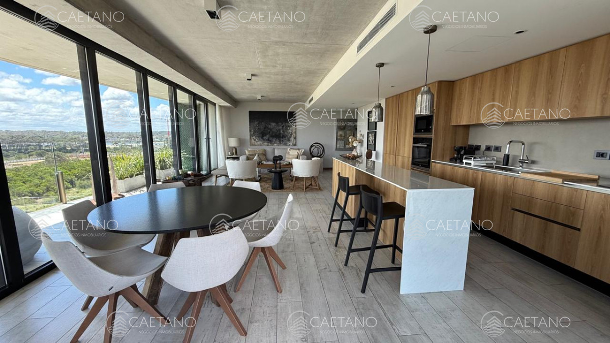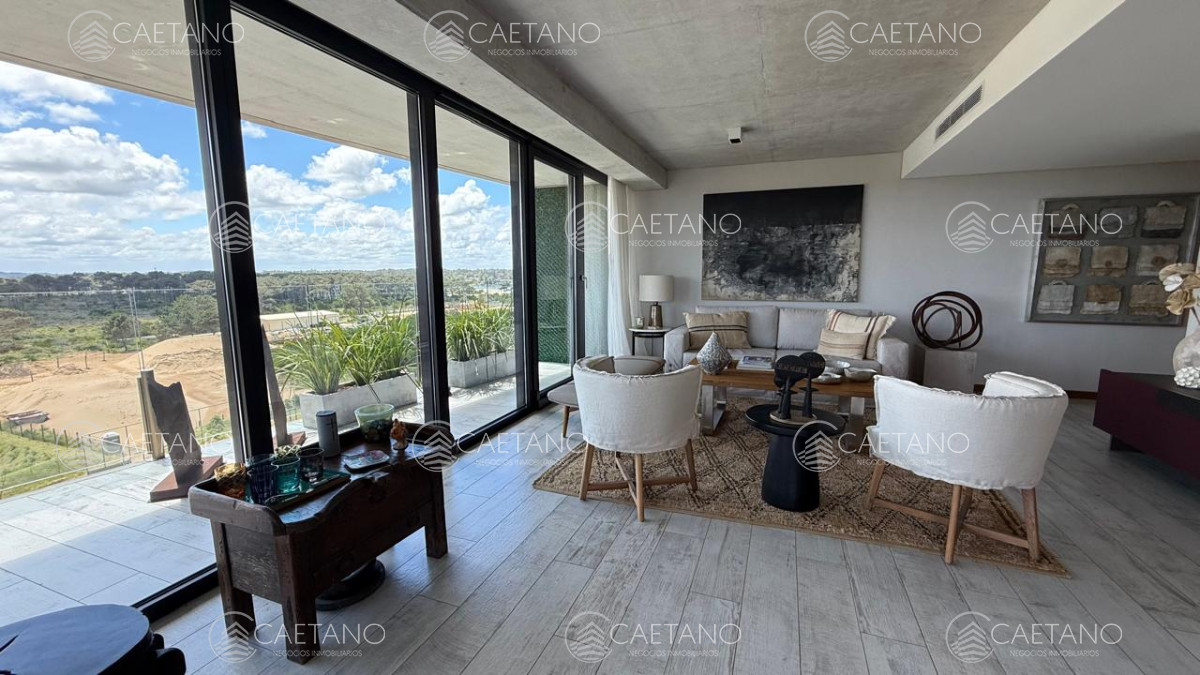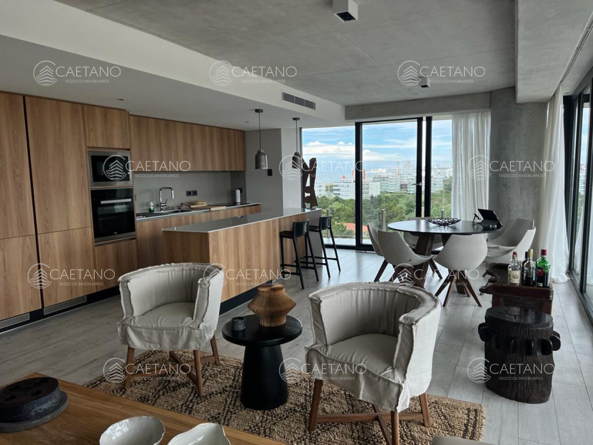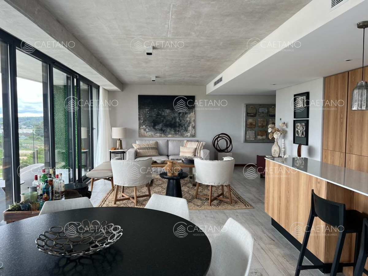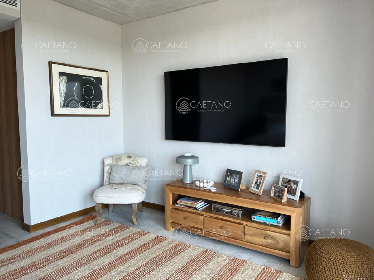 Exclusivo departamento en Surfside Village 1 Brava. Tiene 142,79 m², amplia terraza con vista al mar, 1 dormitorio en suite + DEN, 2 baños completos y garaje. Living, comedor y cocina americana integrados, con salida a la terraza. Totalmente equipado, con decoración y mobiliario premium.