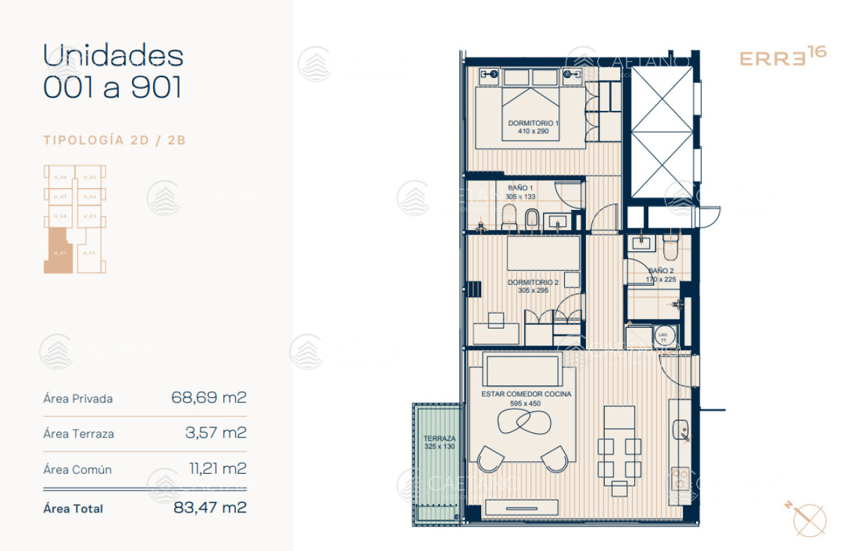 Edificio de 68 apartamentos con unidades monoambiente, de 1 y 2 dormitorios, diseñados con espacios modernos, luminosos y funcionales. Todos los apartamentos cuentan con terraza cubierta, ventanas de piso a cielo, cocina integrada y estacionamiento propio.
