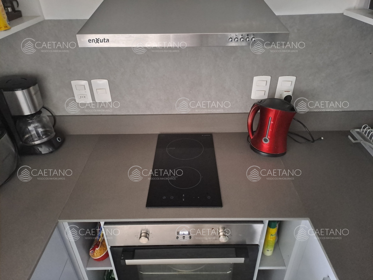 Este elegante apartamento de 1 dormitorio y 1 baño es el oasis perfecto para parejas en busca de comodidad y estilo. Con una capacidad para 2 personas y una cama espaciosa. El diseño moderno y funcional del apartamento incluye una cocina integrada, un acogedor living comedor para disfrutar de deliciosas comidas caseras. Equipado con todo lo que necesitas para una estancia confortable, desde un anafe hasta un microondas y una heladera con freezer, este apartamento lo tiene todo.