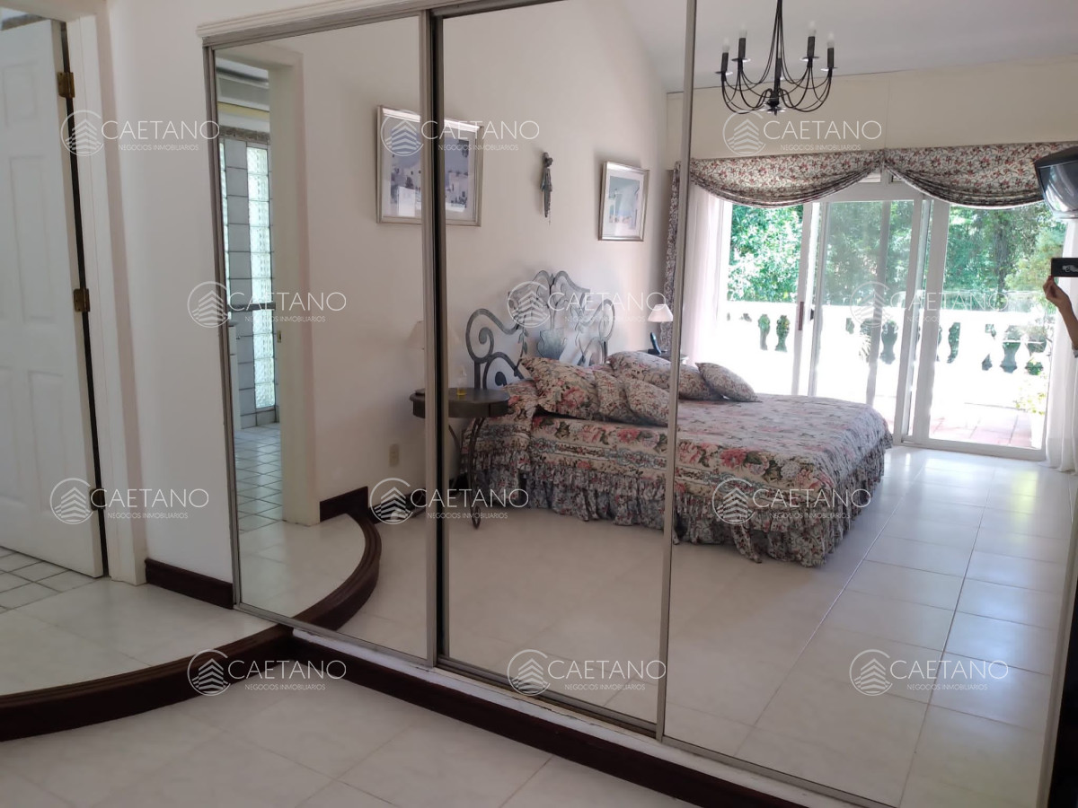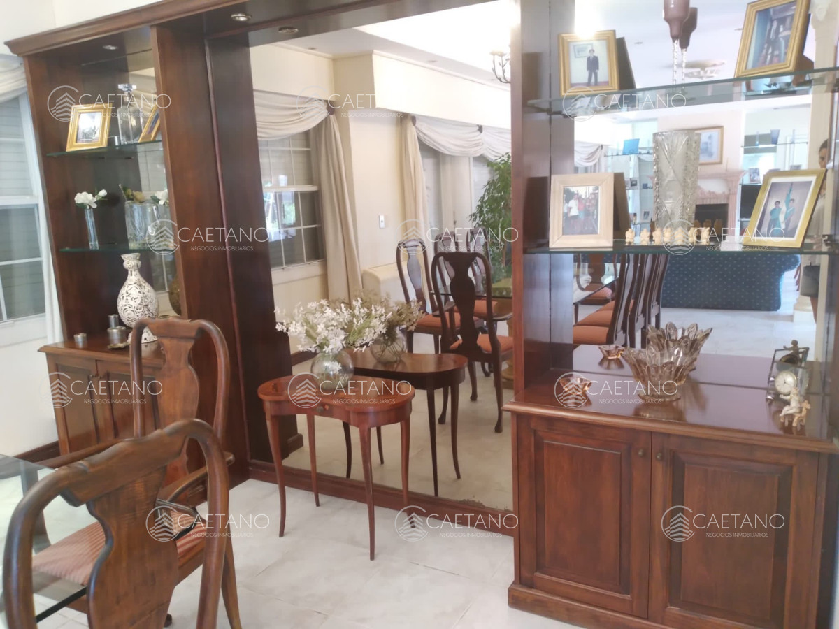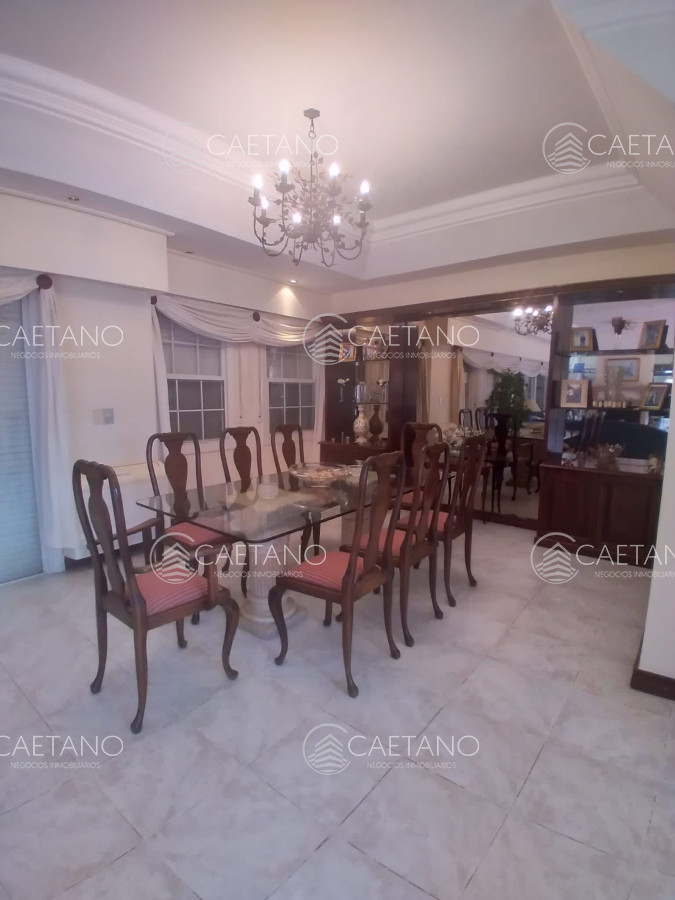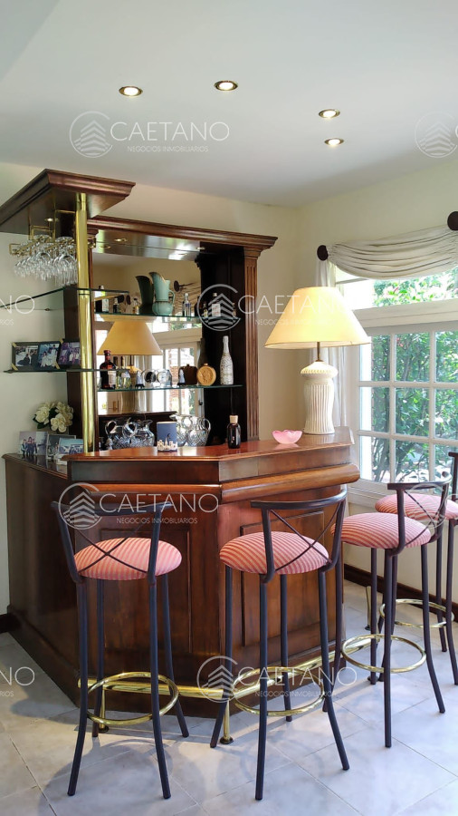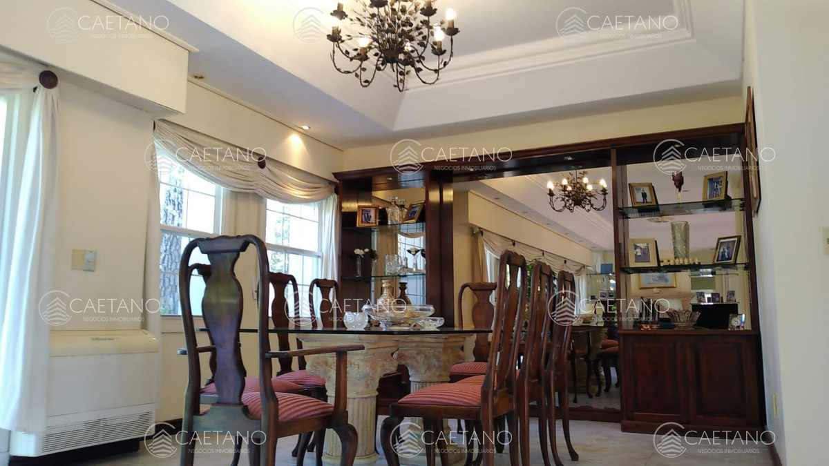 Cuenta con 5 dormitorios (master suite con terraza y jacuzzi), 4 baños, comedor, cocina completa, lavadero, estar intimo y baño social, habitación de huéspedes, dependencia de servicio, playroom, lavadero y barbacoa. Además tiene amplia pileta climatizada en el exterior.