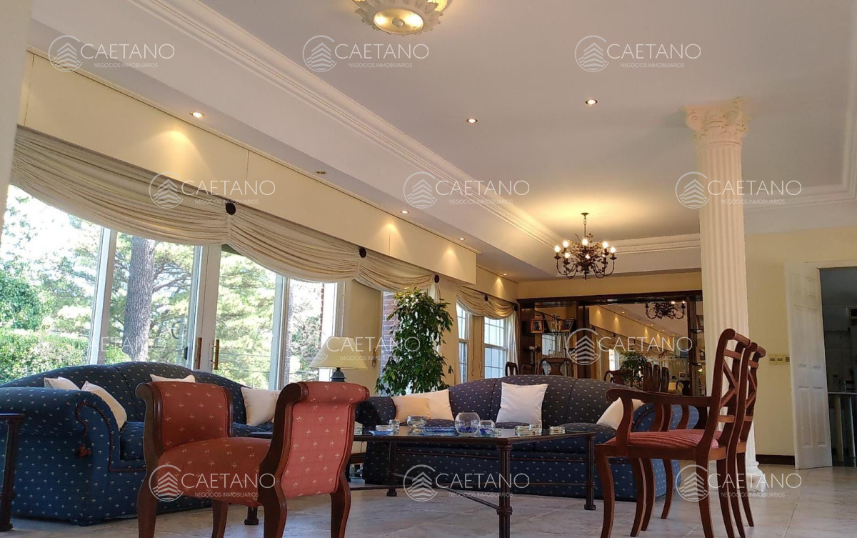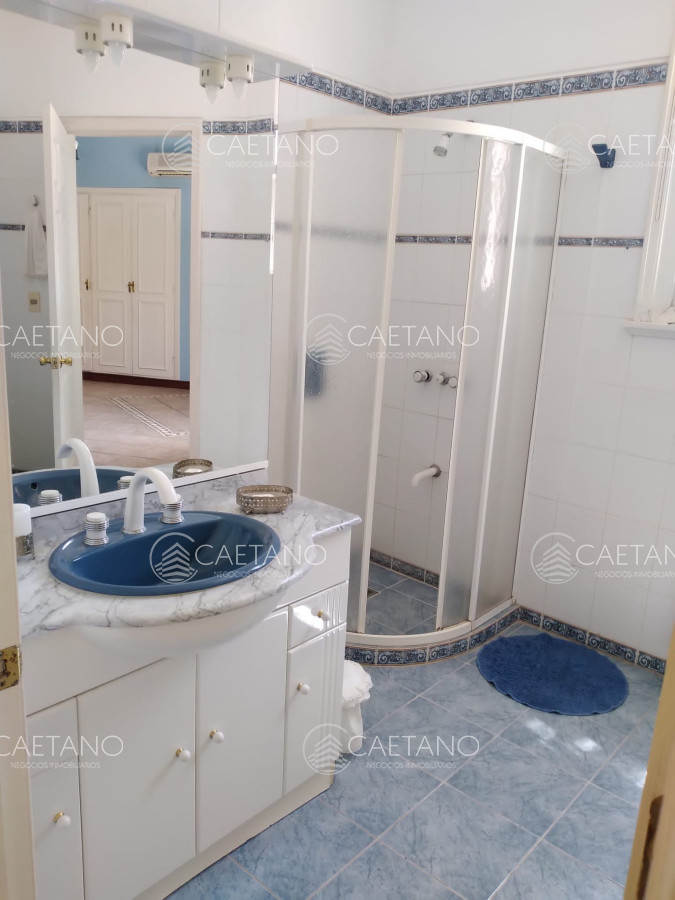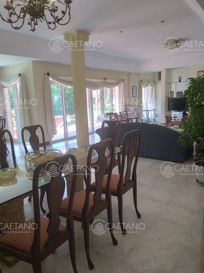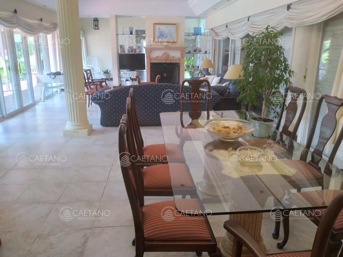 Cuenta con 5 dormitorios (master suite con terraza y jacuzzi), 4 baños, comedor, cocina completa, lavadero, estar intimo y baño social, habitación de huéspedes, dependencia de servicio, playroom, lavadero y barbacoa. Además tiene amplia pileta climatizada en el exterior.