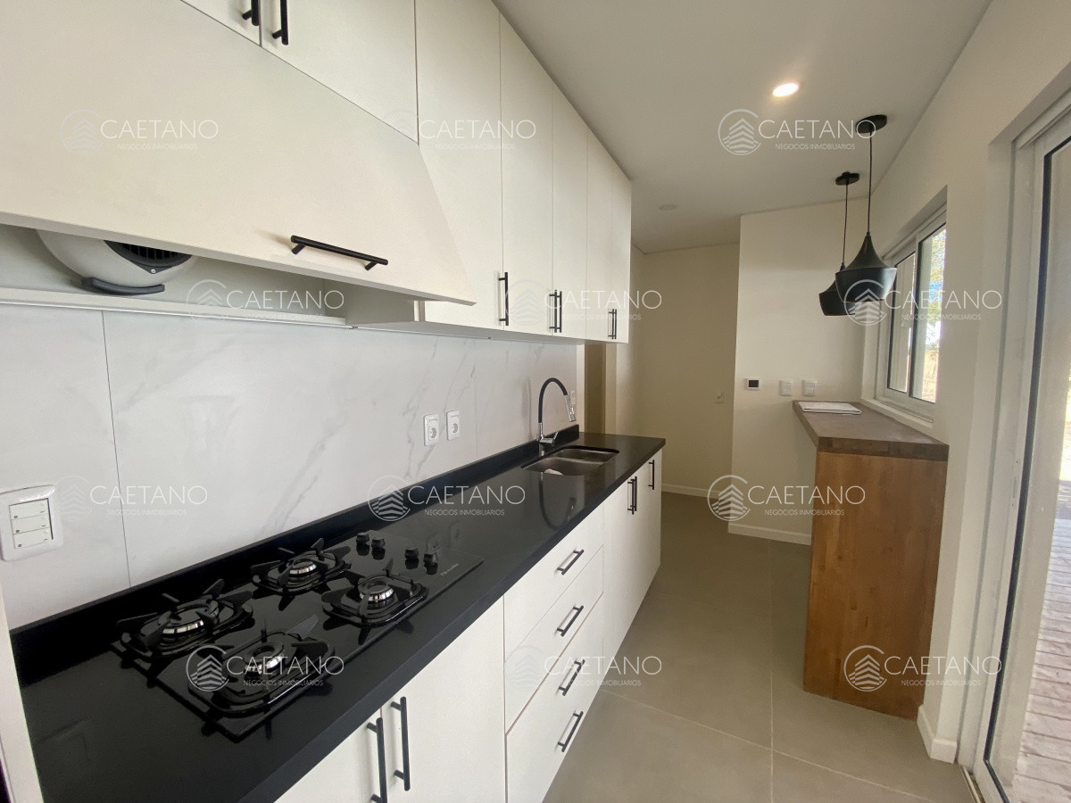 Anafe a gas, Horno electrico y extractor, espacio para heladera de 1metro, desayunador con