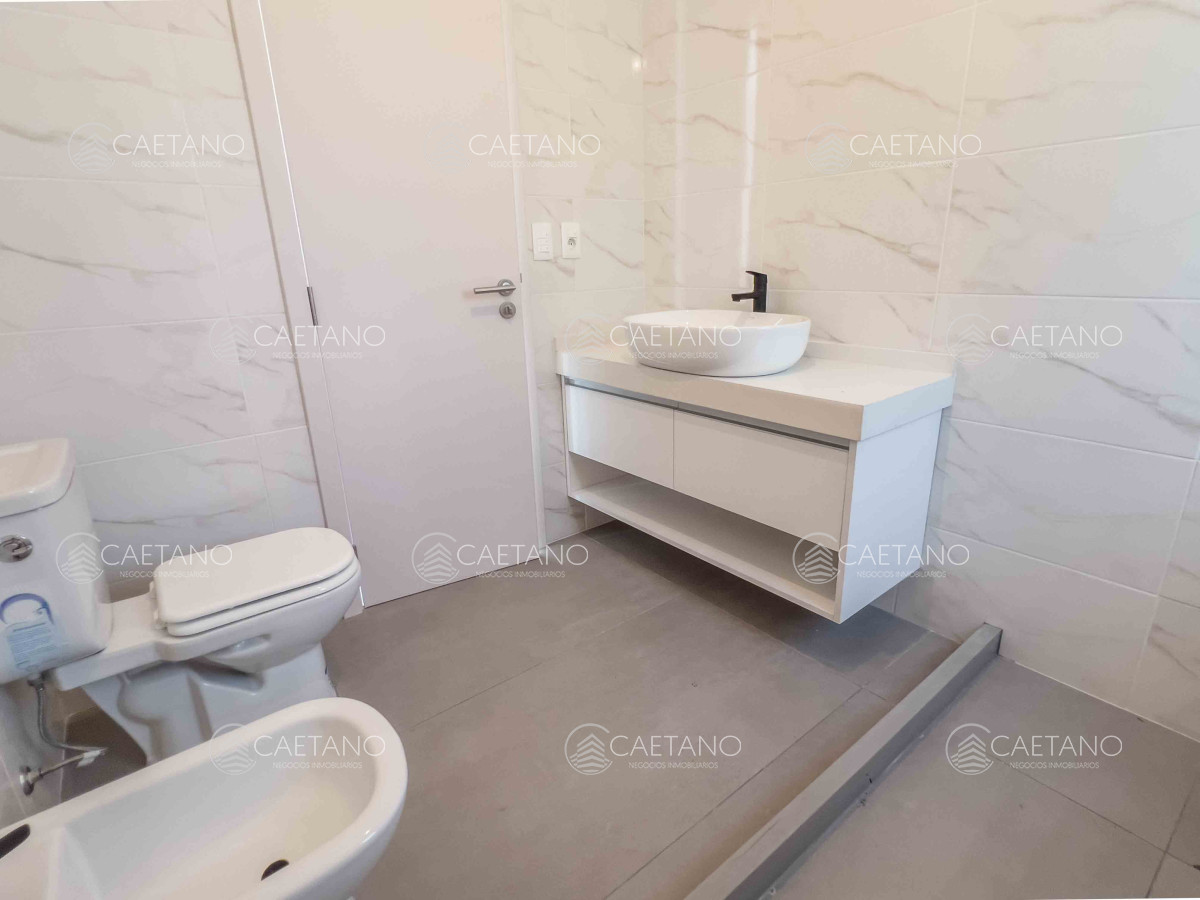 Revestimientos de cerámica en baños y cocina y grifería monocomando.