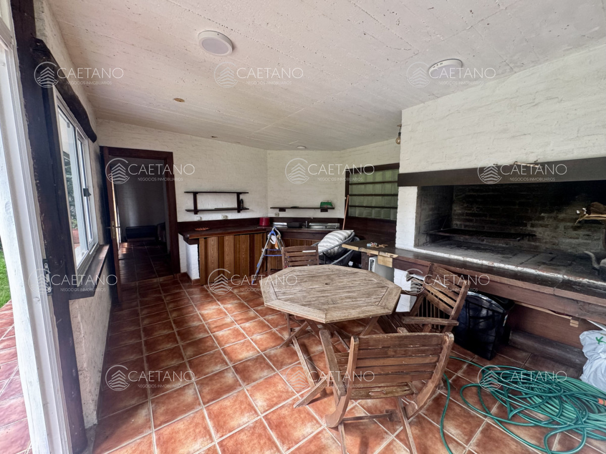 El jardín, amplio y muy bien cuidado, es uno de sus grandes diferenciales. Al fondo del terreno se destaca un completo sector de barbacoa que integra dependencia de servicio y un tercer baño, generando un espacio independiente ideal para reuniones y disfrute durante todo el año.