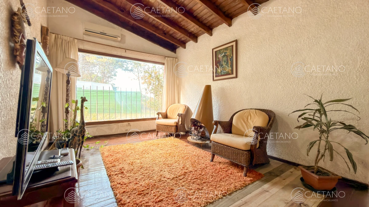 Propiedad con tres plantas que cuenta con 4 dormitorios, 1 en suite y vestidor, un segundo living y sala con escritorio.