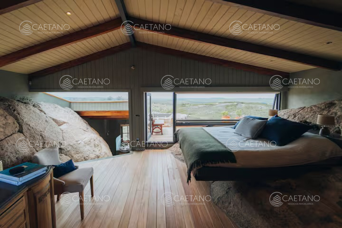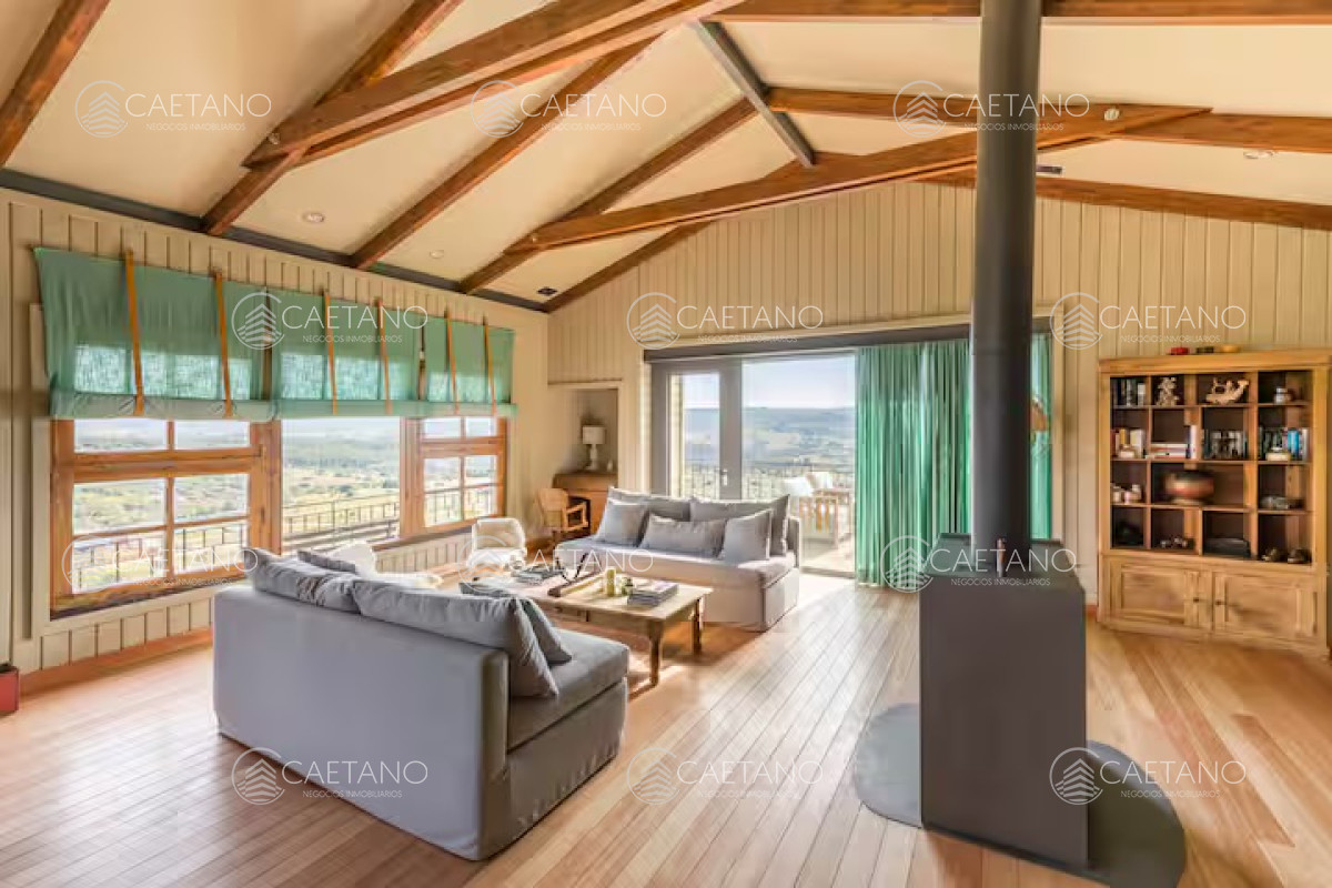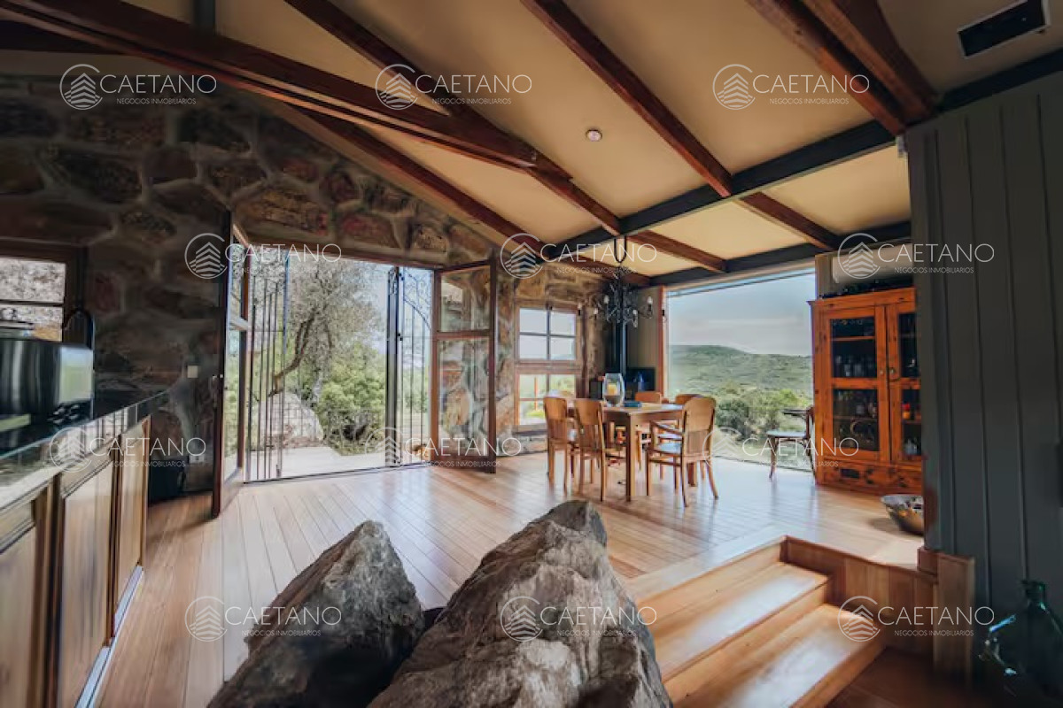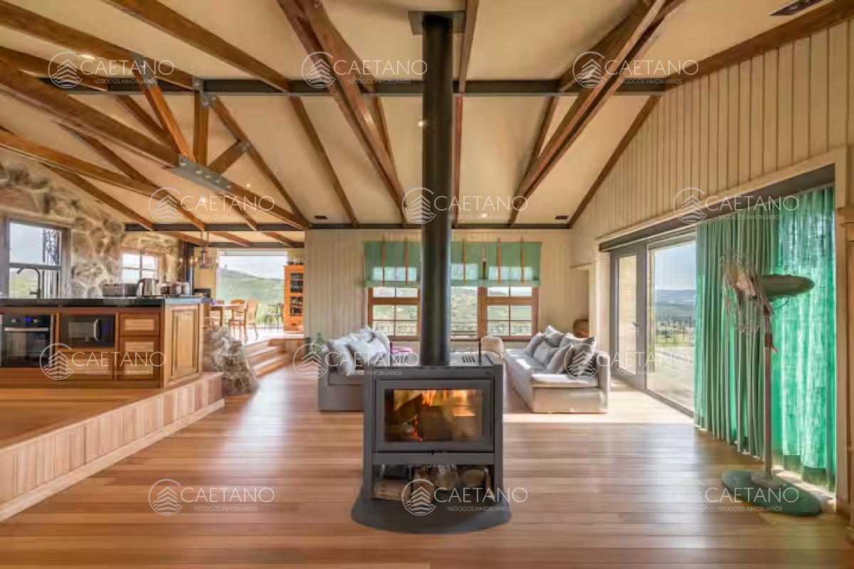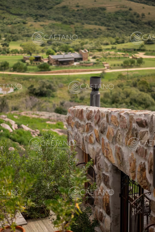 La Madriguera está ubicada en Las Taperas Chacras, diseñada y pensada para ser un refugio en el mundo. Situada en una posición elevada, literalmente colgando del cerro, ofrece vistas panorámicas espectaculares de todo el valle. Su cálido diseño combina piedra, madera, colores neutros y una decoración meticulosamente planificada en cada detalle. Esta casa está concebida para disfrutar de la familia y los amigos, de la naturaleza y de la paz. Sus ambientes son acogedores y están diseñados para compartir momentos especiales, como encender el fuego, cocinar, disfrutar de una comida juntos, caminar y descansar. Inmersa en un terreno de 10 hectáreas, La Madriguera cuenta con una entrada con portón eléctrico, caminos internos, 300 árboles frutales, espejos de agua, pasarelas de deck, un galpón y la casa principal. Cada elemento está pensado para ofrecer una experiencia de vida excepcional en un entorno natural único.